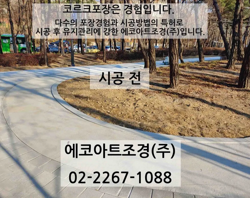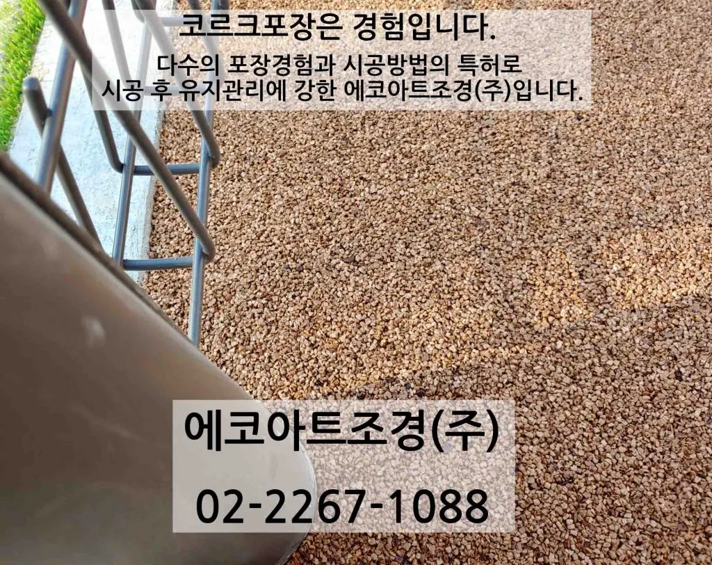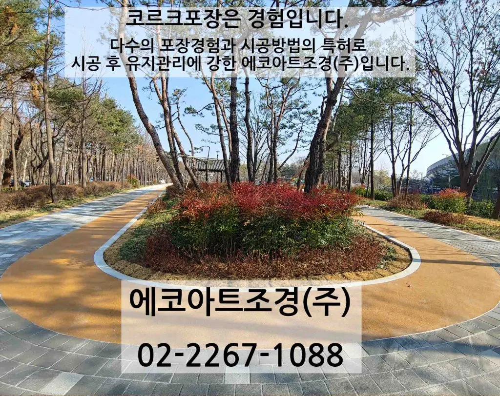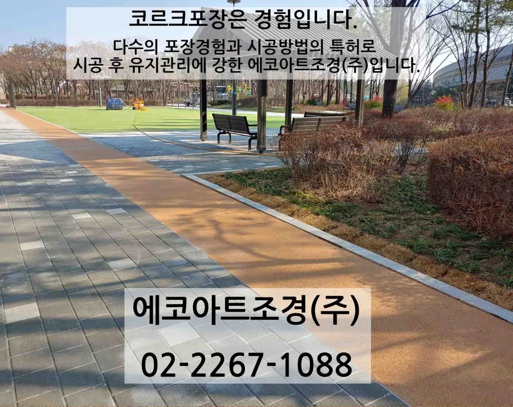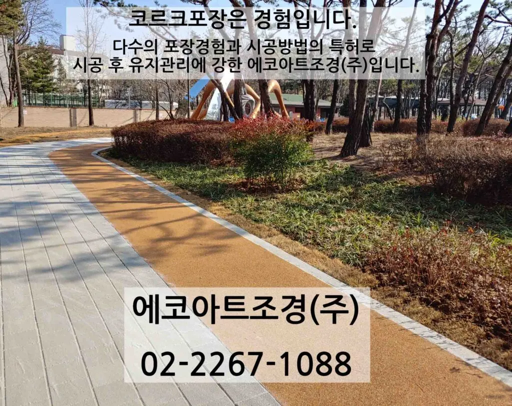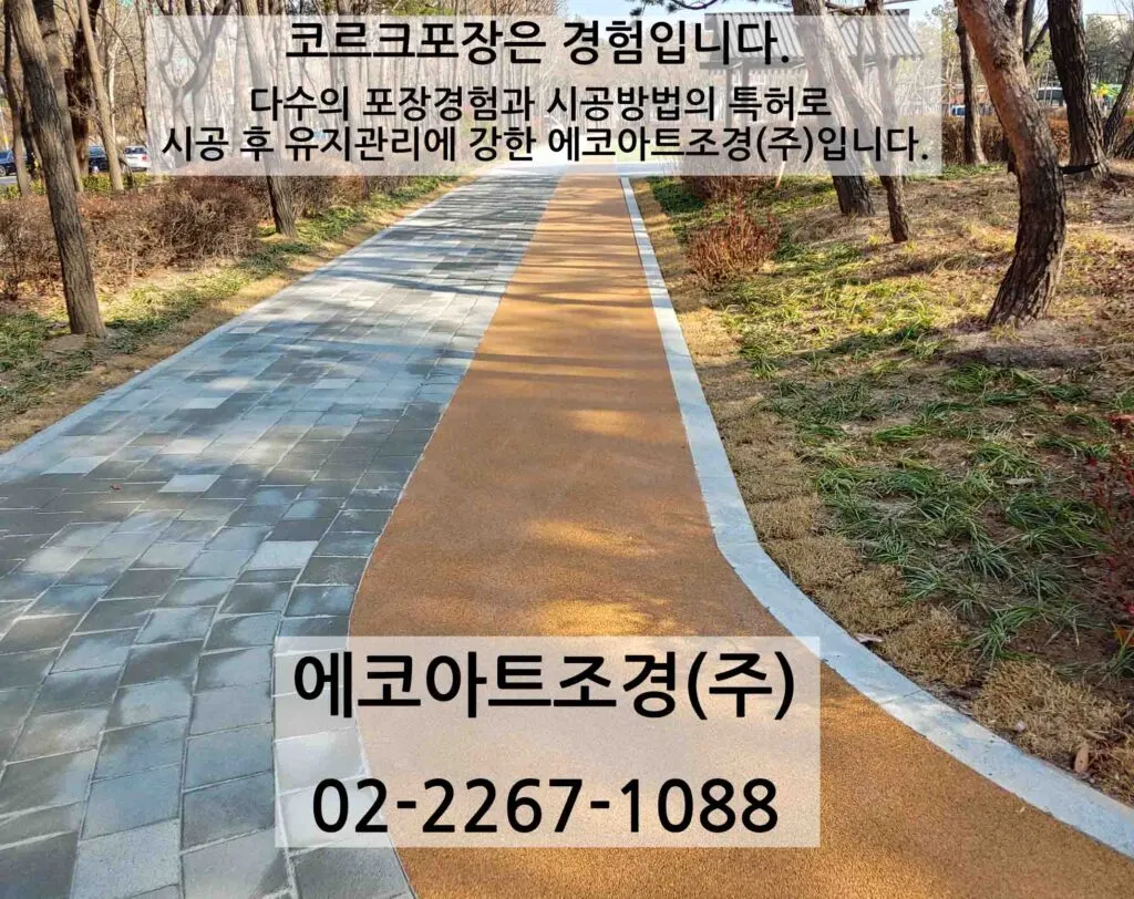 에코아트조경(주)만의 시공 방법으로 시공 후 틈새 벌어짐이나 들뜸이 없이 산책로, 보행로, 놀이 공간에 오래 사용할 수 있습니다.