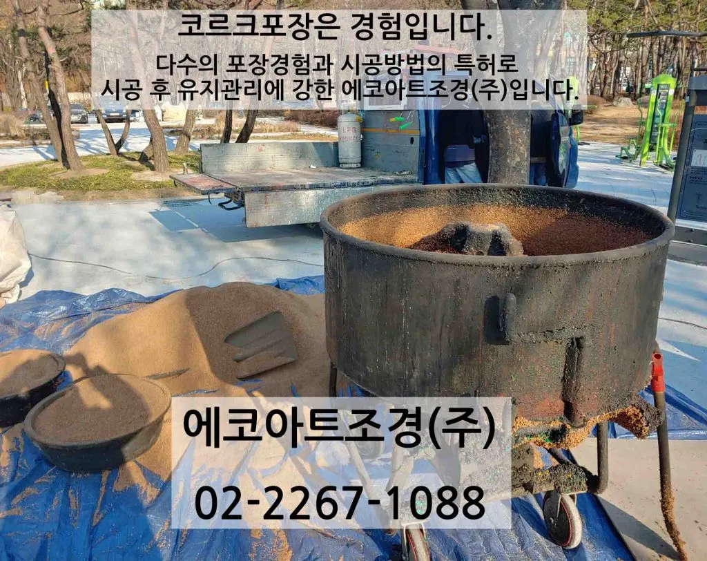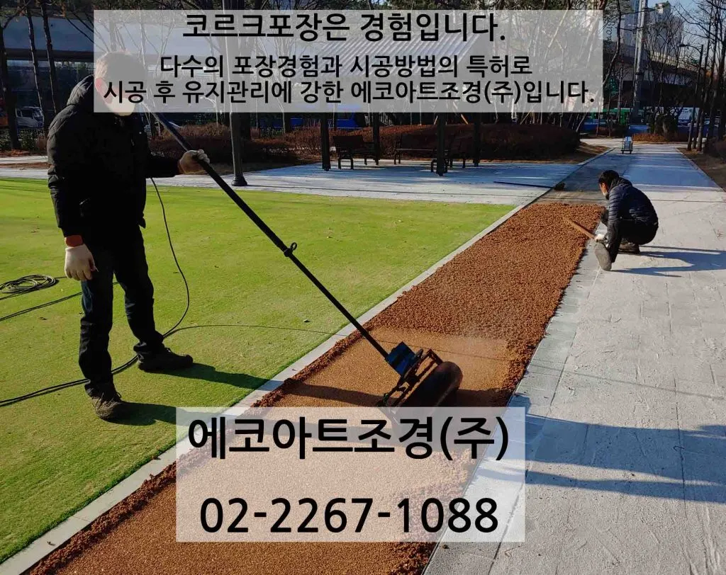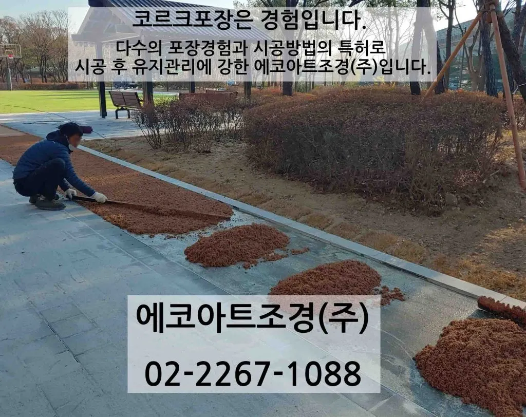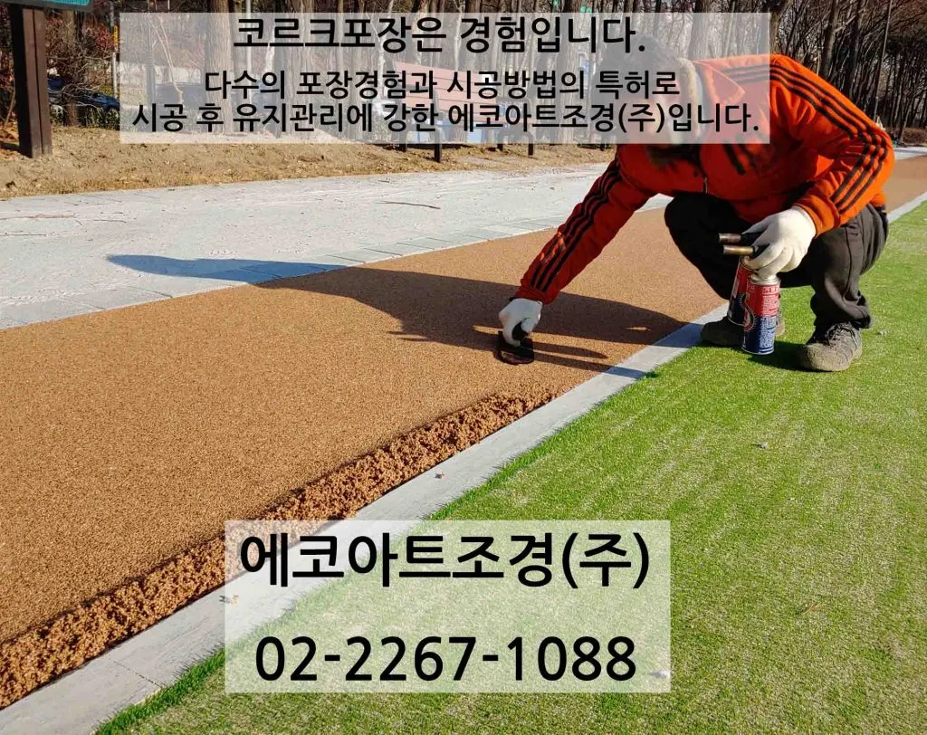 에코아트조경(주)만의 시공방법으로 시공 후에도 유지관리가 강한 코르크포장재로 만들어져갑니다.
