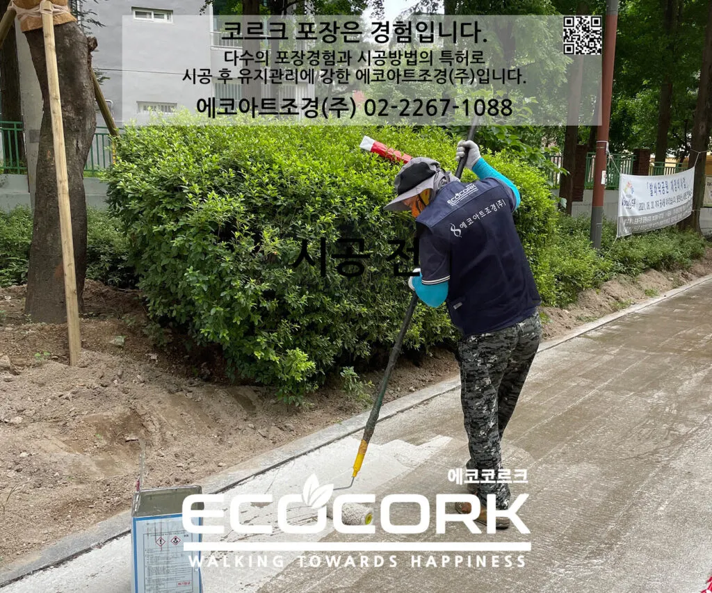 프라이머를 도포하여 코르크 포장재가 잘 부착되도록 꼼꼼히 밑 작업을 진행합니다.