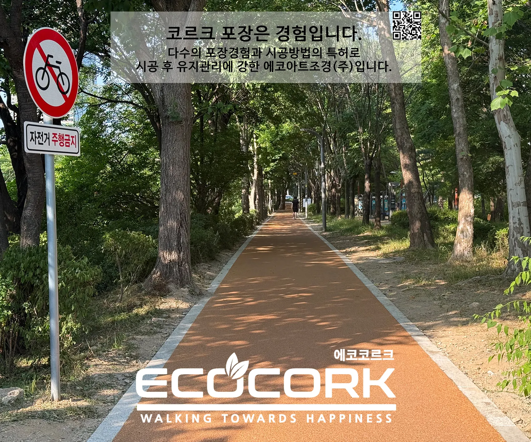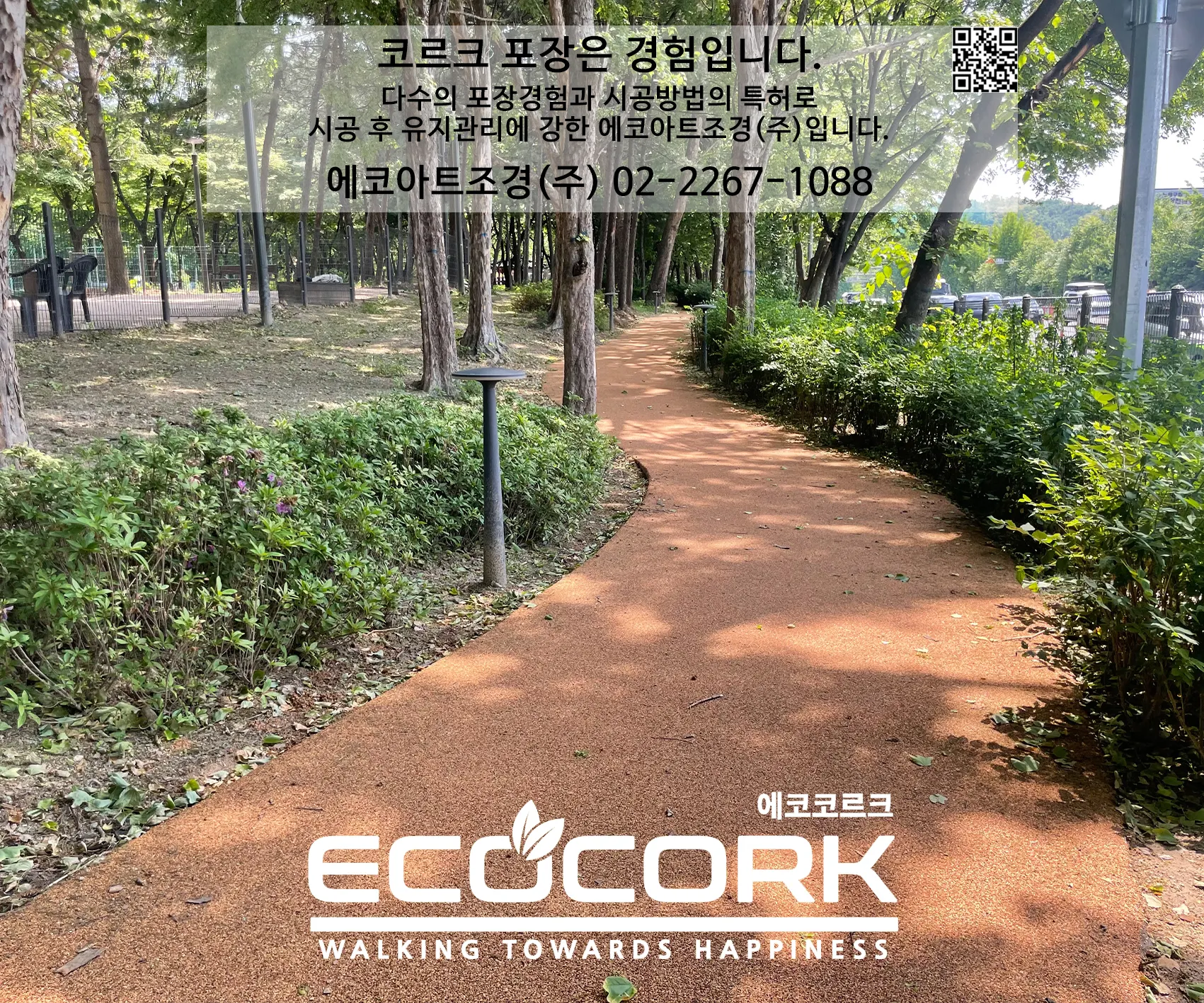 에코아트조경(주)은 친환경 천연코르크 포장재를 통해 시민이 안심하고 걸을 수 있는
