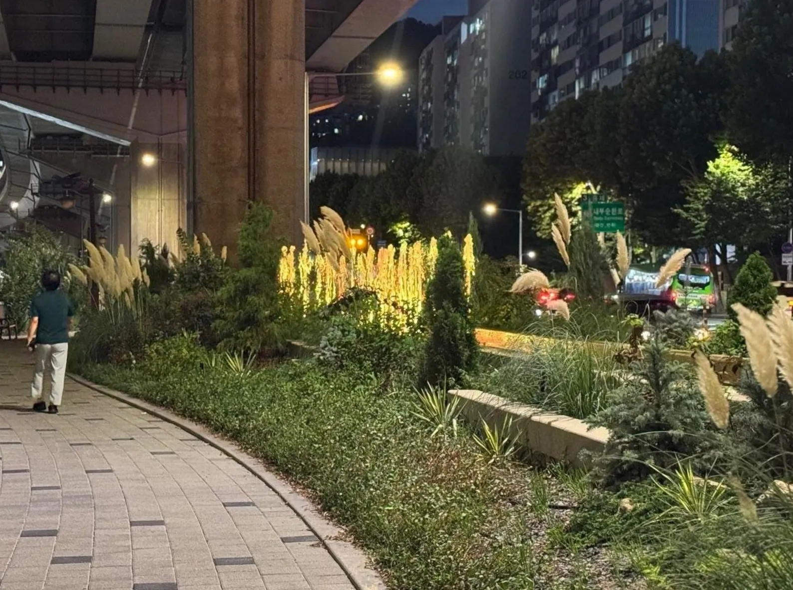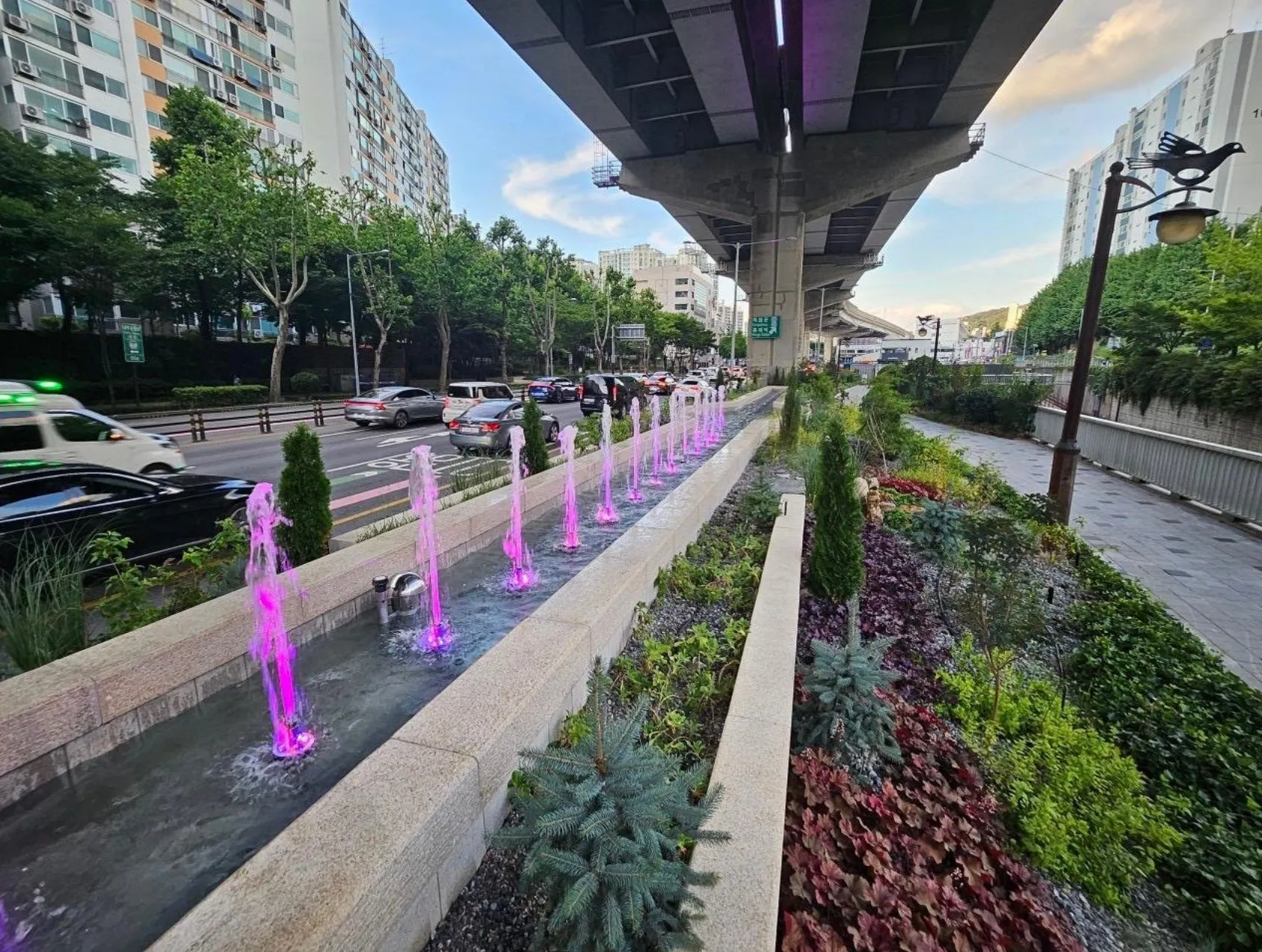 에코아트조경은 서대문구 고가하부 유휴 공간을 보행자 중심의 녹색 보행로로 재구성한 ‘그린아트길’ 프로젝트를 시공했습니다.