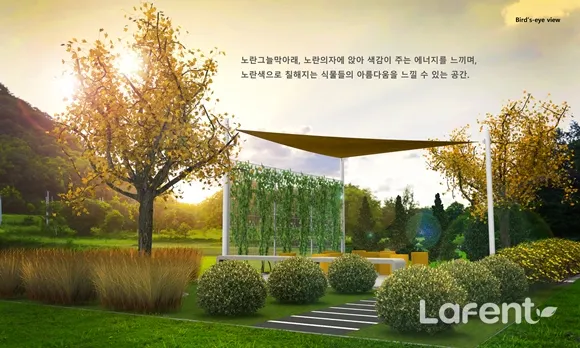 정원은 노란색을 테마로 시설물과 식물을 노란색감으로 조성한 디자인이다. 노란색은 색상 중 가장 밝고 낙척적인 색상으로, 색감이 지니고 있는 에너지를 정원으로 표현하고자 했다. 긍정의 에너지를 담고 있는 노란색을 통해 정원을 찾는 이들에게 웃음과 행복을 전달하는 비타민이 되길 바란다.