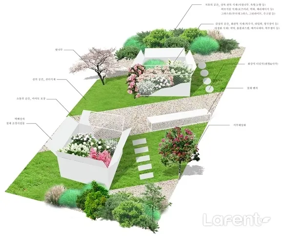 나른한 주말 아침에 음악을 들으면 위안과 함께 이런 게 소소한 행복이구나 느낄 때가 많다. ‘악기마다 독특한 음색이 있는 것처럼 색채도 독특한 느낌을 나타내는 요소가 있다.’ 러시아의 화가 칸딘스키는 바그너의 오페라를 듣고 감명을 받아 음악을 들으면서 색을 보는 공감각을 경험했다고 한다. 이렇듯 음악을 보고, 색채를 듣는 공감각적인 요소를 정원에 녹여보고자 했다.