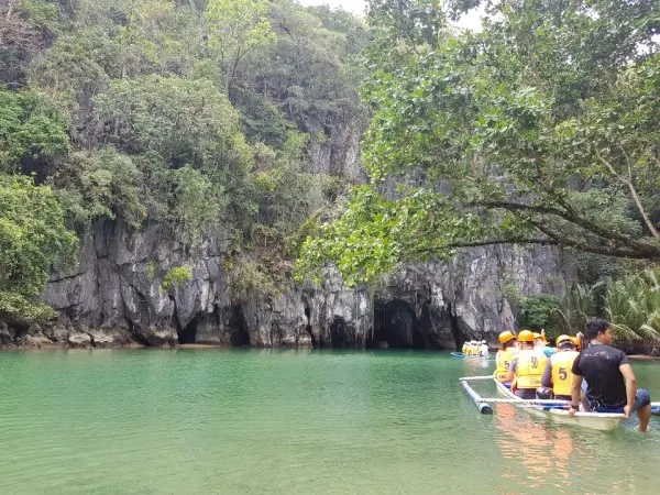 다음날은 세계 7대 자연경관으로 꼽히는 유네스코 지정 자연 세계유산 지하강 국립공원을 갔습니다. 배를 타고 지하강이 있는 곳까지 가야하는데 선착장에서는 날씨가 흐리고 비도 살짝 오더니 지하강이 있는 곳은 날씨가 맑습니다.