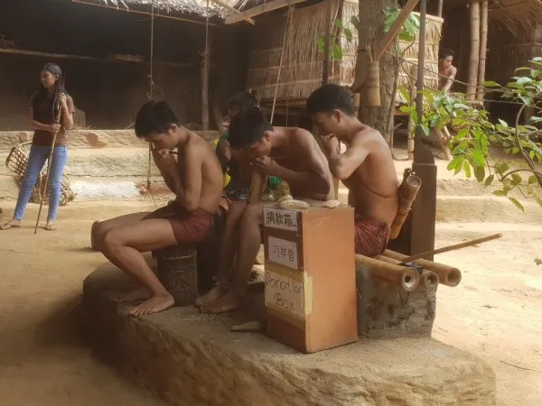 나비농장 한 쪽에는 원주민들이 거주하며 공연을 하는 공간이 있습니다. 전통악기도 연주하고 사냥하는 모습, 불 피우는 모습 등을 보여줍니다.