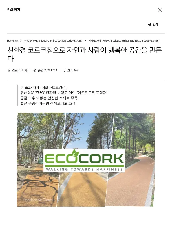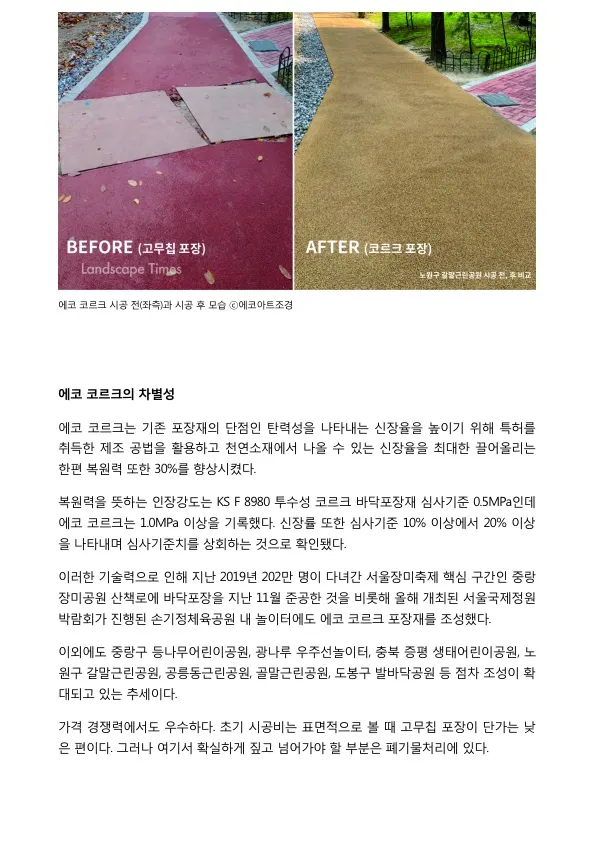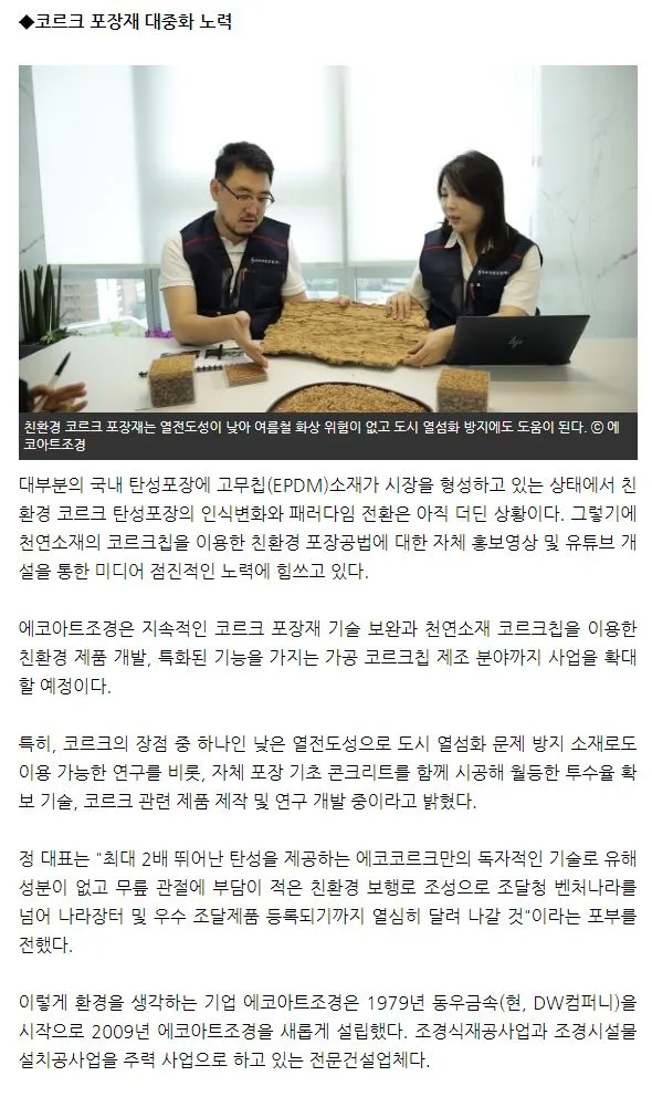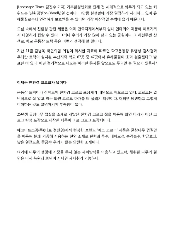 [언론 보도] 바닥을 바꾸면 건강과 안전이 보인다 - 에코아트조경(주) 친환경 천연코르크 포장