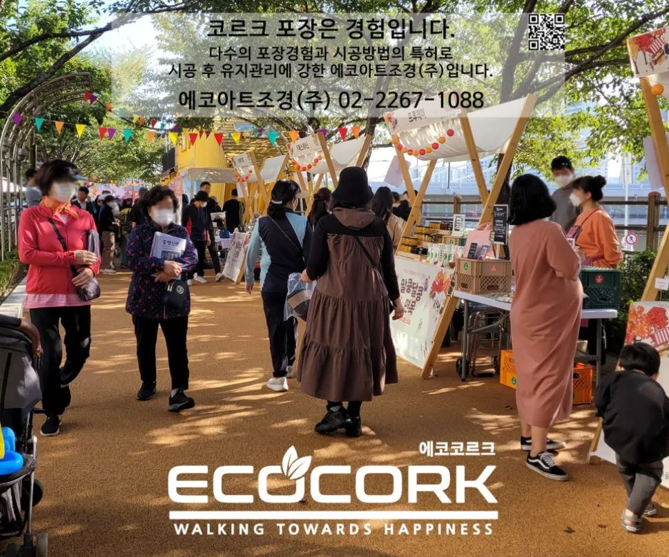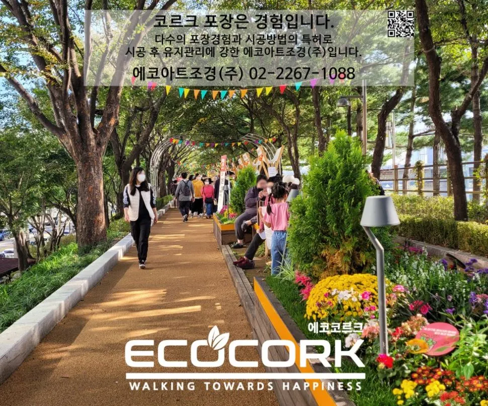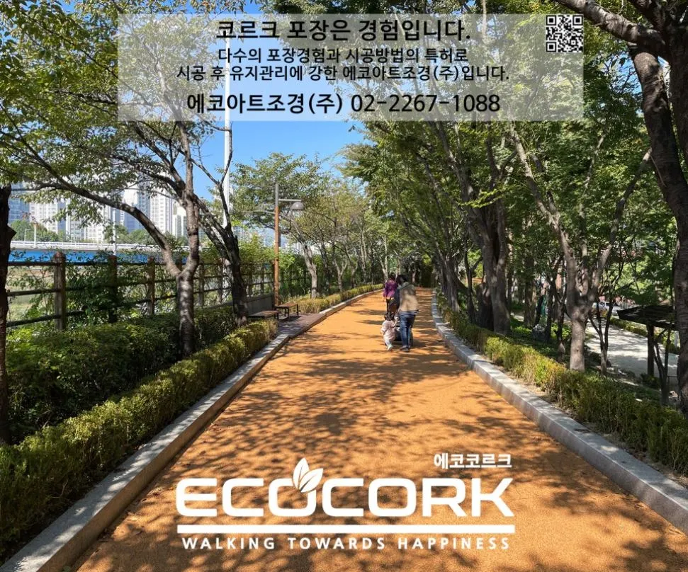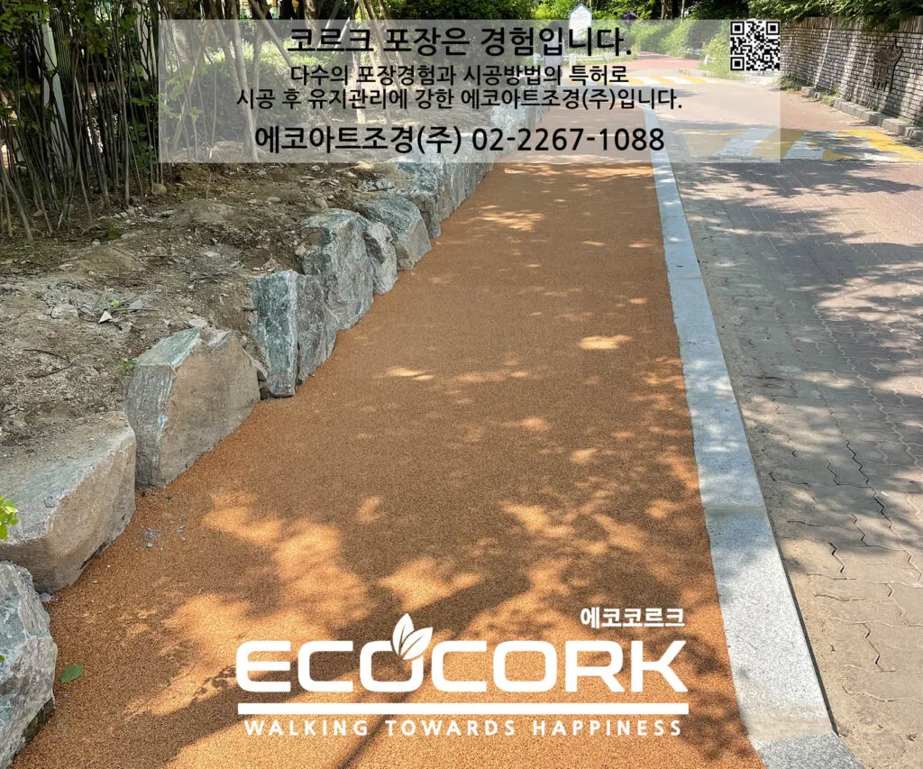 에코아트조경(주)은 친환경 천연코르크 포장재를 통해 시민이 안심하고 걸을 수 있는
