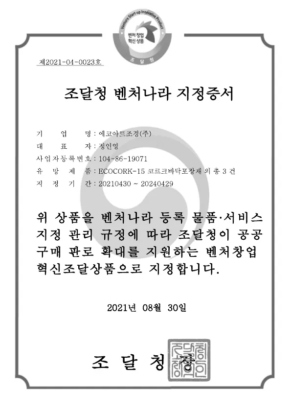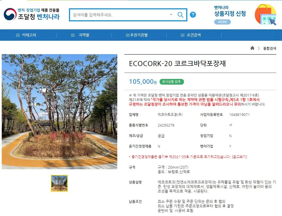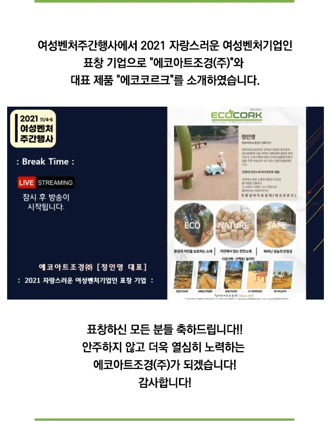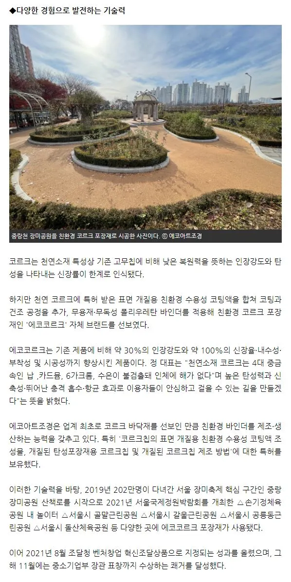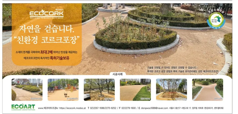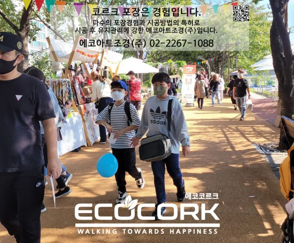 에코아트조경(주)은 친환경 천연코르크 포장재를 통해 시민이 안심하고 걸을 수 있는