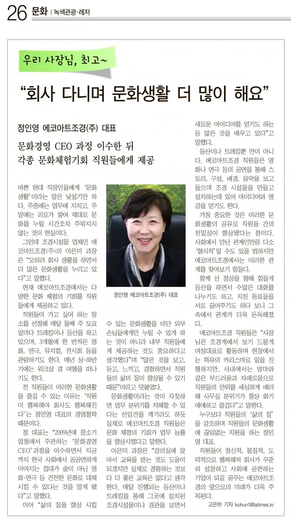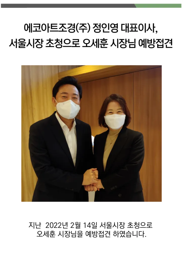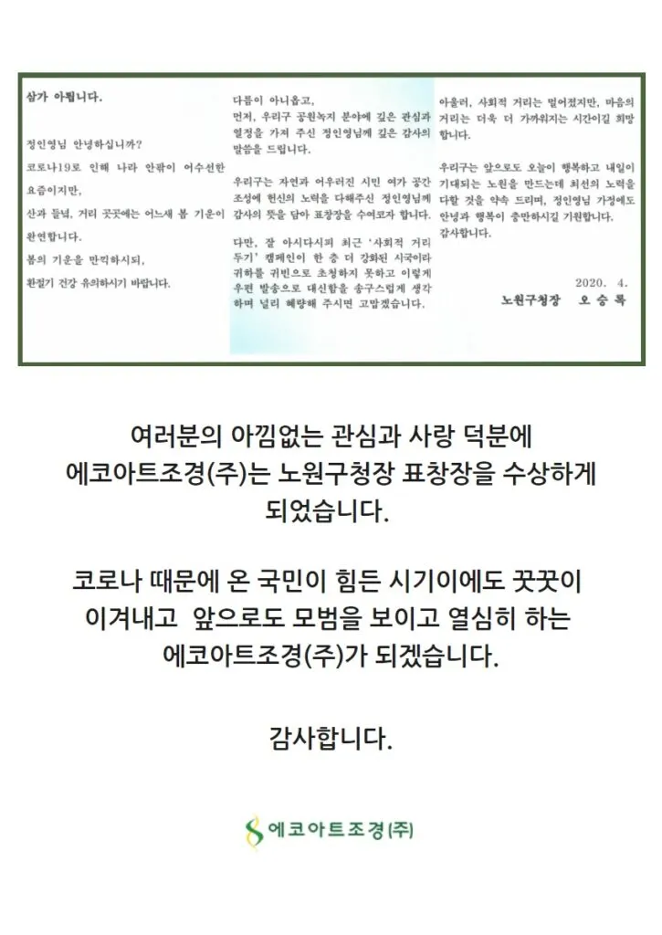 에코아트조경(주)은 앞으로도 안전하고 건강한 도시 공간을 만들어 가기 위해 최선을 다하겠습니다.