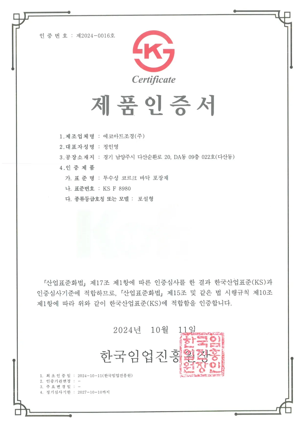 KS 인증을 받은 제품으로 안전성과 내구성을 확보했으며, 도시 열섬현상 완화와 미세플라스틱 저감에도 기여하여 지속 가능한 도시 환경 조성에 앞장서고 있습니다.